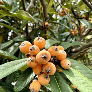 父のお墓参り お寺にたくさんのビワがなっていました。摘果しないので3cmくらいのがびっしり!家にあったら、と食いしん坊の私😅 鳥さんのご飯かな🐦⬛