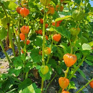 *ホオズキ* 1️⃣2️⃣畑のホオズキが色づいてきました。虫食いの葉っぱを取ったら赤い実が綺麗です。 3️⃣今日は御先祖のお墓参り、畑のお花で豪華にお参り花が出来ました。