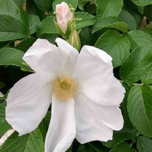 原種系薔薇🌹 ロサ•ルゴサ•アルバ🌿 (シロバナハマナス) 近年、自生する野生のものは減り、宮城県や福島県をはじめ多くの県で絶滅危惧種もしくは準絶滅危惧種に指定。大切に守りたい自然🌱