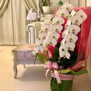 おはようございます☀ みぞれ混じりの雨が降っています🌨 ずいぶん前に頂戴した胡蝶蘭。 1列だけ、上の方の花が元気がなくなってきましたが、まだまだ見頃です❣️