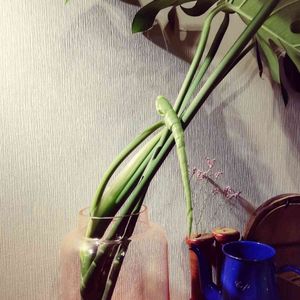 title モンステラおばさん 2つに分けたから、 うちにいるモンステラおばさんは5人になった。笑。 頭が重すぎて、 気根が花器口に押され かわいそうになり 軽くするために 分けてみました。 どうかな。。。 新芽ちゃんはまだ丸まってる。待ち遠しい。 ごちゃごちゃさわってしまうから我慢我慢。 明日いい日になりますように。。。