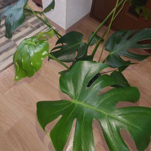 GS開始一ヶ月記念成長日記②🌿 「モンステラを育ててみたい!」と思い、モンステラの種類もわからず、いつものホームセンターお値打ち品でゲット!いやー、すっごい大きくなるヤツだったんだ(笑)後から調べてビビりました。確かに音も無く成長している!大きな葉っぱは顔より大きい!顔も大きいけど💦 来た時にはドリルだった新芽もすっかり開いてます♪全体的に緑が濃くなった。