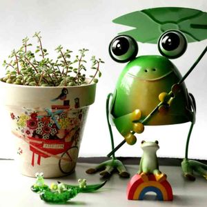 (*ˊᗜˋ*) ノこんにちわ plumrinkoさんのI loveはちゅ シェラさんのカエルパーティー♪ 楽しそうなので 参加させて下さい🙋💓 大きなカエルは ダイソーで200円で買ったよ(*ˊᵕˋ*)੭ ੈ 200円の割には可愛い💕💕 手前は硝子細工コレクションから 🐸ちゃんと きゅうりに乗ったカッパチャン カッパチャンて伝説の妖怪だけど なんか爬虫類っぽい(((๑´ㅂ`) ʬʬʬ 今日は☔🐸の北海道 晴れたらいいね♪ と🌈✨に乗ったコポーチャン リメ鉢作りました(*´ㅅ`*) こんなのどうかな? ブロウメアナも もりもりになってきました(❁´ω`❁)