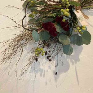 先日、田舎の道の駅で見つけた花材で秋のスワッグを製作💐 ・ケイトウ ・ワレモコウ ・ヒオウギ ・ミズヒキ ・サンキライの実