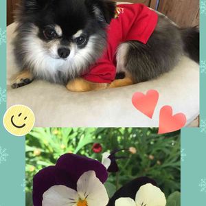 ぱんだももか💜咲き始めました😊 種からは待ち遠しいですが、可愛さ倍増です❣️ アランはお気に入りのマシュマロクッションでほっこりです🐶 ワンワン祭り参加します🎶