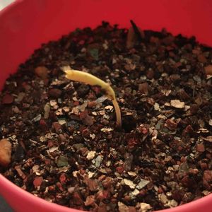 4/8の発芽率、日光を浴びて鉢の周りが暖かくなるからか端っこばかりで真ん中からは発芽しない