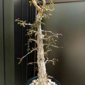 Operculicarya decaryi 樹形が好みのデカリー。 適度に剪定をしながら栽培しています。 パキプスに似た小さな葉も可愛い。幹肌も独特です。 去年の休眠期は完全に葉を落とさせなかったので、成長期が少し心配でしたが調子いいです。 成長期の夏は見応えがあるけれど、冬の休眠期に入る際、この葉が落葉し始めると、落ちた葉の処理が大変ww