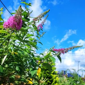 夕方の水やりしてたらバラ うららの2番花が満開になってました。隣のブッドレア グルービーグレープも今年もとても綺麗です。この子は矮性なので、ブッドレアの中では割とコンパクト。1.5m四方くらいのサイズです。(ブッドレアの中ではコンパクトな方) モモ 日川白鳳は重くて木がしなっていたので支柱を立てて結んでおきました。実を残しすぎて実があんまり大きくなっていません。収穫までに太らなかったら来年はきちんと摘果しないとですね。 柿は生理落下もだいぶ進んだかなーという感じなので、少しだけ摘果して剪定しました。写真は東京紅と陽豊です。他に太秋が2本ありますが、太秋は摘果しなくていいくらいしか実が付いていなかったので、落果しないことを祈ります。 新芽を確認しながら、1本に3つ以上ついてるところ、2個以上ついていて明らかに向きが悪いもの、のみ摘果してきました。 剪定は花後に1回しているので、向きの悪い弱い枝だけ追加で撤去しました。3年目?の去年は1~2個食べられたかな、程度でしたが、さて今年はどのくらい残るでしょうか。