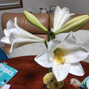 お天気の良い日が続きます☀️ 我が家の💚ユリ、ホワイトヘブン🤍✨ オリエンタル系とテッポウユリ系の交配種 涼しさを感じさせてくれます😌(気分だけ…😅)