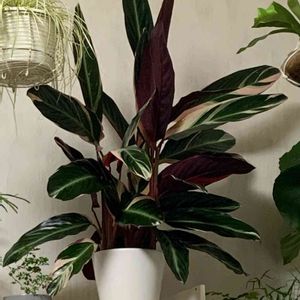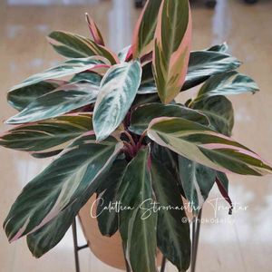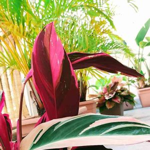 カラテア ストロマンテトリオスター & カラテア ホワイトフュージョン 葉っぱの裏がバーガンディとラベンダー よく撮れなかったけど美しいデス❤︎ 朝日がっつりの日も作ってあげよう 葉っぱの先が枯れるのは日差しが強すぎたからと思ってたけど もしかしたら逆かもしれません。 うちに来る前はもっと明るいところにいたしなー🤔