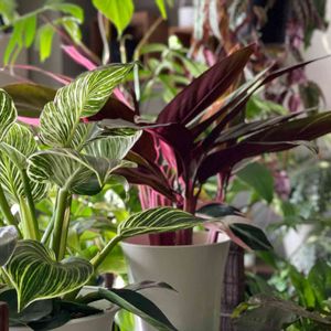 新しく我が家に加わったカラテア!😍 葉っぱも大きくて、裏側がエンジ色で… ステキです☺️ 朝になると葉が開いて、夕方になると閉じてくので、毎朝葉が開いてる姿を見るのが楽しい☺️ 冬越えできるか心配ではあるけど、見守りたいと思います。