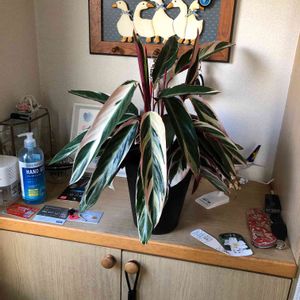 以前から欲しかった カラテア ストロマンテ・トリオスター 本日、園芸屋さんで見つけました💕 ちょっと傷んでるけど 手当して育てます。 今日は幸せな日になったわ♬