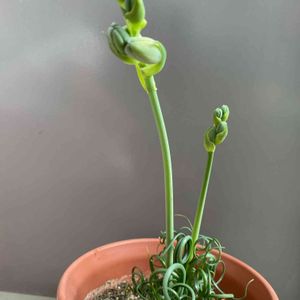 球根を植えて半月 もうこんなに可愛くクルンと… 成長の早さと可愛らしさ アルブカ スピラリス 芽が出たときからテンションあがりっぱなしです!