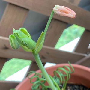 🤤 🌿 アルブカ属スピラリス フリズルシズル あの くるくるぱーすけの蕾です♡ ∩⌒`⊃ ゴロゴロ (_ω_)づ ゴロゴロ♡♡♡
