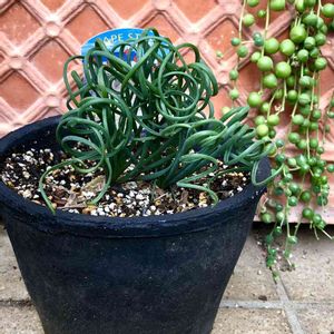 🌱アルブカスピラリス・フリズルシズル めちゃめちゃクルクルして来たーー🌀🌀 お迎えしたままそっとブリキ缶に入れただけなんだけど植え替えしたほうがいいのかな🤔