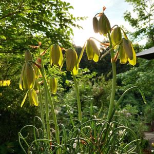 アルブカ ナンジャコレ🌀 今日のお花はこんな感じ 一番下のお花、きのうはもう少し上向いてたような… で、パカっと真ん中開いたりするのかなーって思ったんだけどなんか違った これで終わりかな(^^;;