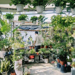 台湾の植物店で植物を愛でるワシ(友人が撮ってくれました♪)
