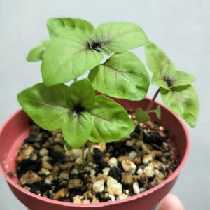 アロカシアさんのお芋を切り離して水苔で発芽を待っていたらこんなに可愛いものが生まれました♪
