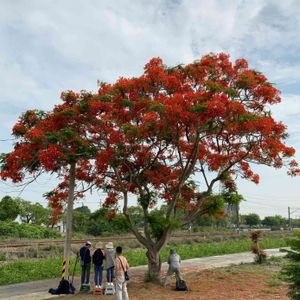 鳳凰木。1週間前はもっと真っ赤だったのになかなか車を停められず。やっと停めて撮影に行ったら台湾🇹🇼の撮り鉄さん達が木陰に使ってました。