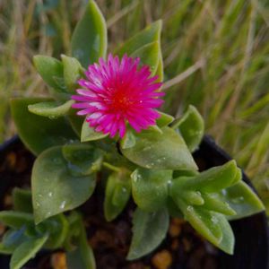 散歩の途中で見かけました 多肉植物のように肉厚な葉っぱに、1円玉くらいの真っ赤なお花が咲きます 毎朝開いて、晩にはまた閉じるようです 名前を教えてください お願いします🙇⤵️