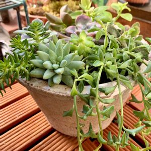 7日に投稿したドルフィンネックレスの多肉の寄せ植え。夜は部屋で管理しようかな💦