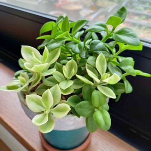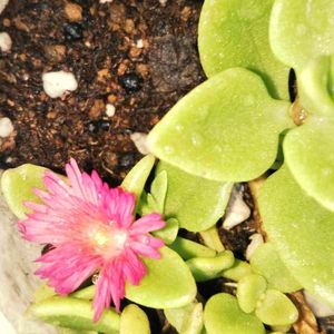 ベビーサンローズ と グリーンサンローズ 「白覆輪花蔓草」 アプテニア属 お花が🌼咲き出し‥😊 比べてみると ベビーさんは花付が 少ない‥😂