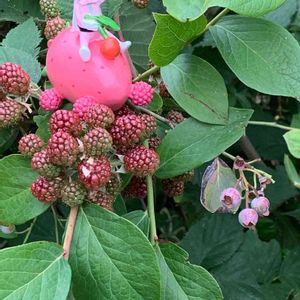 🏷つぶつぶの日 あ〜んど 🏷ジメジメ梅雨を吹き飛ばせコポたん祭り 参加しまーす。 今日のコポたん、ピンク色の戦隊の隊員?! ベリー尽くしの乗り物?! 戦隊カーに乗って登場しました〜 ブラックベリーのタイヤ、 本物とよく似てる。 ブルーベリーも食べ頃までもう少し😋🍴