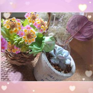 今日は、朝から雨☔️ 1、2回カミナリが鳴りました。 今は、すっかり雨がやみ🌂少し青空🌈 鳥達🕊のチュンチュン声が、聞こえます☺️ 私の住んでいる所はカエルが🐸現れない。 カエル🐸もう何年もみてないなぁ 寂しいから、カエル🐸並べてみた💡 さーて、どこにいるかわかるかな? 楽しんもらえたら嬉しいです😆 みんな葉挿しっ子の鉢 まだ、少し色が残っています。