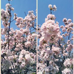 こんにちは🐰 ①②は 桃の花🌸🌸 ③④は さくらんぼ🍒の花 ⑤は、まだ咲いている枝垂れ桜 今は椿、ヤマブキ、モクレン、ユキヤナギ一緒に咲いてて何処見ても花花花🌸🌸🌸🌸花盛りです😊💕 今、撮りたてのpicです^_−☆ 散歩🚶がてら今日の花を撮って来ました♪ 全部で8,800歩歩いたよ😅 今日もお疲れ様でした♪(๑ᴖ◡ᴖ๑)♪