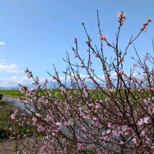 雪の残る岩木山とピンク色の桃の花 🩷🌸🩷🌸🩷🌸🩷🌸🩷🌸 今日は青空 素敵な景色で気持ちの良いお天気 気分も上がります🩷🌸🩷🌸🩷