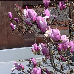 今日のお花 モクレン ②③桃の花 今日は午前中 大荒れの天気 霰は降るわ暴雨風☔️🌀 で花びら散ってなくなっちゃった 明日掃除が大変だ💦