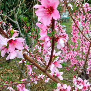 梅は終わってしまったけど、桃の花が咲き始めました😊孫ちゃんが生まれた記念樹。3年目の今年も可愛く咲いてくれてありがとう♡ 庭に植えた花の苗たちも、順調順調😊