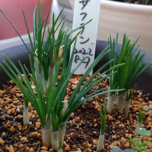 サフランはこんな感じ やっと葉が伸びてきて緑になった😆
