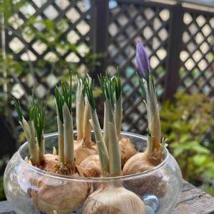 今夏 サフラン球根の植える時期を逃してしまったので、来夏に持ちこしと思っていたら 倉庫で芽が出てるのを発見💦 急いで土の上に並べました😅 大丈夫 だと信じたい🫣 ※この後 ダンナに 「並べ方雑💧」と言われ きちんとやり直しました😢