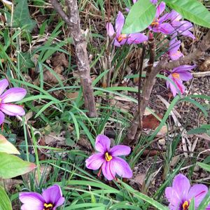 沙羅の木の下で、サフランが顔を出していました😊 お花少ない時期だから、なんか嬉しいな😊✌️