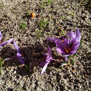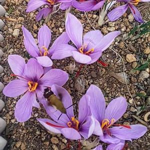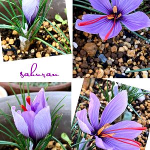 サフラン咲きました😄🙌 この赤い雌蕊がスパイスとなるのか🤔 採取して飛ばないよーに乾燥させて、パエリア🥘だな❤️