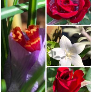 おはようございます🎶 金曜日の蕾たち🏷参加させていただきます! ⬅️鉢植え🪴のサフランのつぼみ 雌しべが見えてます❤️ ↘️スターローズのつぼみ 2年目 ↗️スターローズ 開いた子 ➡️白のキキョウ まだ咲いてます