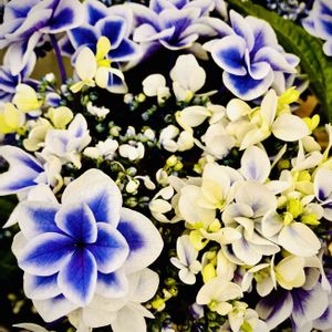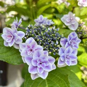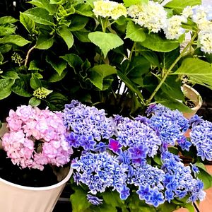 アジサイ🪴女神降臨です。 また四文字熟語😅 麟鳳亀竜リンポウキリュウを頼んだお客さまです。 咲きはじめはガク咲きで、咲き進むと両性花も開き半テマリ咲きになるとのこと。 1枚目の写真を🤳よく見ると、両性花が開き始めて、グリーンとピンク、ホワイト💚🩷🤍が混じりあって、とても魅力的です。 ブルーの🩵方は、KAMOコレクションの佳澄🪴清楚でかわいいです。 アジサイの鉢植えが入りだすと、母の日へ向けエンジンがかかってきます😊