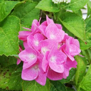 今日も雨☔ 雨が一番似合う花。ピンク、ブルーと次々咲き始めています。