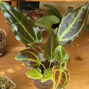 モノレナ・プリムリフローラ ノボタン科の塊根植物でアリ植物とも言われています😃 ウチに来て2回目の冬越しになりますがようやく本来の葉模様のある葉が出てくるまで安定してきました😄 夏の終わり頃入手したのですが暑い時期が休眠期らしくウチに連れてきてすぐに葉が全部枯れてしまいました。 塊根植物なので希望を捨てず水苔栽培で養生して小さな葉が出てくるようになり、昨年にハイドロボール管理に移行したのですが上手く馴染んでくれて本来の葉模様が出てきました🤗