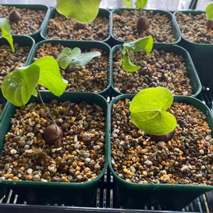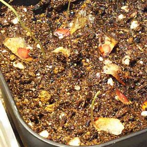 現在、5個出ました✨✨ 追記すると、今年の春にオークションにて、海外輸入種子を購入。蒔く時期ではないような気がしたので冷蔵庫で管理。 いちかばちかで、先日にタネ蒔きしたしだいです。 生え出したら、このまましばらく腰水でよいのかな?? どなたかわかりますか?