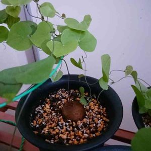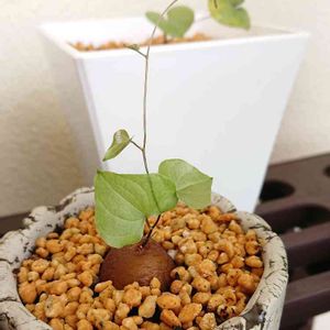 Dioscorea elephantipes . アフリカ 亀甲竜 種を蒔いてから丁度1年の亀甲竜。 長い梅雨の梅雨寒で目覚めてから、そのまま蔓を伸ばし続けています。 まだ、亀甲模様が出ていないツルツルのお芋がとっても可愛いです🙂