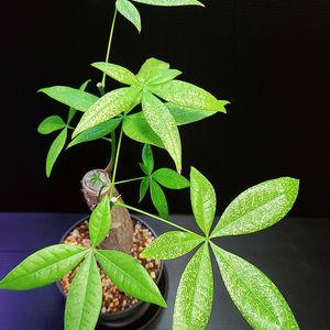 パキラ ホームセンターで斑のようなものが入ったパキラを見付けました。 スゴく珍しい黄斑のミルキーウェイのような斑ですが、病気、害虫、焼けの可能性もあります。 ノーマルになってた葉は全部切り戻してあるので新葉に斑が入るか楽しみです。 1つ新しく小さい葉が出初めてます、虫眼鏡で見ると小さな斑が入ってるようにも見えますが小さ過ぎてまだはっきりは分かりません 次の展開が楽しみなパキラです。 560円でした(^^)