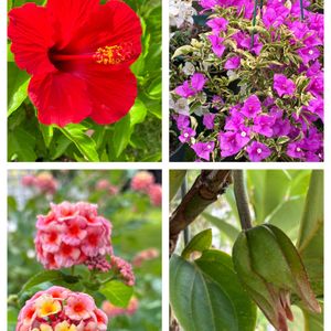 ↖︎赤いハイビスカス ↗︎プーゲンビリア ↙︎ランタナ ↘︎メディニラマグニフィカ 今年はもう咲かないのかな?と 諦めかけていたら、なんと👀 蕾が!!🫨🤔