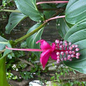 先日初めて見たので娘と調べました。 以下、ご存知の方はスルーしてください。 「熱帯の宝石」と呼ばれ、割と大きめな観葉植物です。花茎も変わった形をしています。生育環境を保つのが一般家庭では少し難しく、お値段も高額で貴重だそうです。