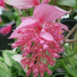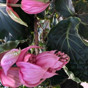 おはようございます☁️ メディニラマグニフィカ。 花屋さんにありました。店員さんが珍しそうに眺めていたのでパチリさせていただきました。 フィリピン原産の熱帯花木。 ノボタン科メディニラ属。 ピンクの花のように見えるのは苞で、この中にたくさんの球状の小花を咲かせ垂れ下がります。 とにかくゴージャスでした。