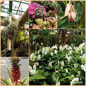フラワーガーデン温室内。 小さなピンク色の花が房のように下向きに咲いてました。 あまり見た事のないお花で、かわいらしい印象でしたが、木は南国って感じで、そのバランスが絶妙。