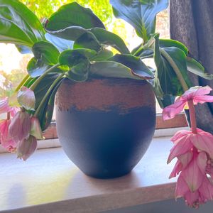今年も咲きます メディニラ マグニフィカ ノボタンの仲間ですが大きな葉っぱに蕾もデカい。 🏷金曜日の蕾たち 参加します。 葉っぱが元気ないなぁ 影になる時間が多いからか とりあえず 先代には黙って肥料やるか····