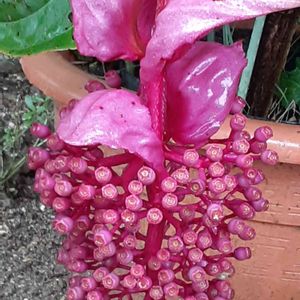 メディニラマグニフィカ!お花の後こんな大きな実がなるの?💗💗ベランダのスペキオサに比べて倍はあります💗💗ブルーベリー見たいです(o^^o)