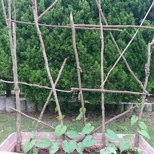 夕顔用に、前投稿で話題にした南天の伐採木を使って、支柱を組んでみました 夕顔の優美で涼しげな姿には、趣ある支柱がいいなぁ、とか思ったりして…… 背はあまり伸びてくれると支えが足りなさそうなので、ほどほどに元気に育ってほしいです